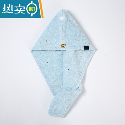 敬平加厚干发帽吸水干发巾浴帽成人女长发可爱洗头速干包头巾 天蓝色 双层干发帽