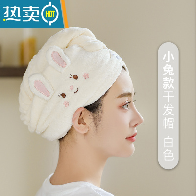 敬平干发帽女吸水速干发巾2021新款包头巾浴帽加厚器擦头发毛巾 白色(小兔款干发帽)