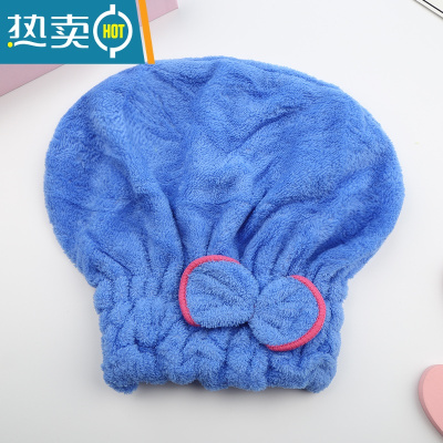 敬平女吸水速干器擦头发护发帽珊瑚绒包头巾浴帽可爱家用 蓝色 第二件半价干发帽