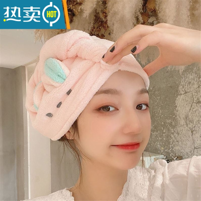 敬平干发帽2021新款网红女童头巾女包头吸水韩国兔耳朵可爱熊擦头加厚 粉色小兔干发帽加厚