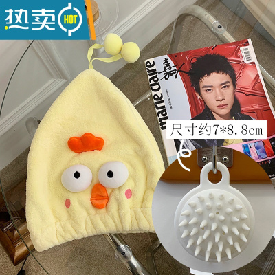 敬平干发帽女吸水速干新款加厚洗头毛巾擦头发包头巾儿童浴帽可爱 浅黄小鸡干发帽+洗头梳