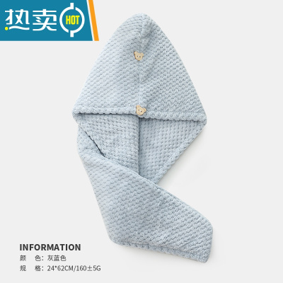 敬平yodoxiui干发帽女吸水速干 双层加厚可爱长发包头擦头发毛巾 单层菠萝格干发帽 蓝灰色
