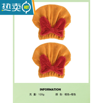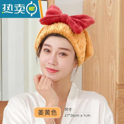 敬平干发帽女吸水速干浴帽可爱长短发洗头擦头干发巾2021新款加厚 大蝴蝶公主帽♥姜黄色*2♥