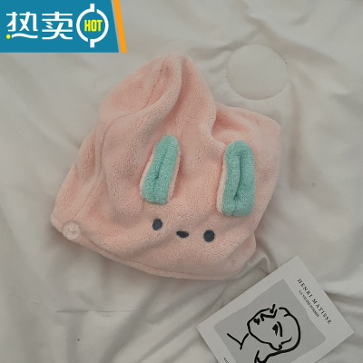 敬平浴帽干发帽女抖音同款干发帽吸水速干可爱加厚卡通包头巾 乳白+粉色[两条装]