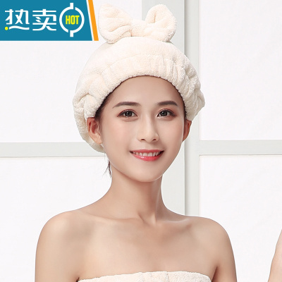 敬平干发帽吸水速干加厚珊瑚绒可爱蝴蝶结擦头发毛巾浴帽干发帽女 粉色(蝴蝶结)