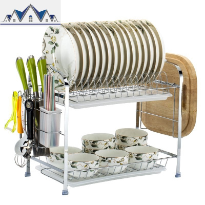 厨房双层碗碟架家用碗筷黑色台面置物架餐具碗盘收纳架碗架沥水架 三维工匠