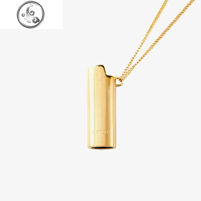 DOITGO ins金属个性砂轮打火机壳套吊坠黑金银色钛钢毛衣项链男女 JiMi