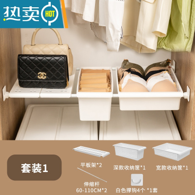 敬平衣柜免钉隔层挡板衣柜橱柜移动分层内衣收纳架伸缩杆牢固衣服挂篮