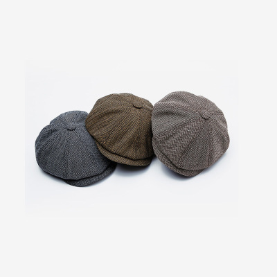 欧美贝雷帽女秋冬天新款英伦复古帽男士文艺时尚八角帽人字斜纹