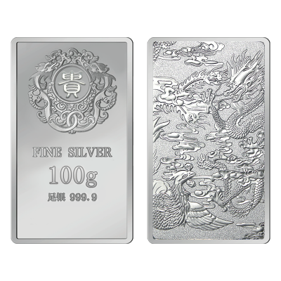 素竹 足银9999银条 新款贵字龙凤银条银砖 100克规格 收藏送礼投资