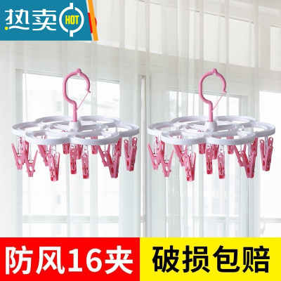 敬平多功能晾袜子架圆盘晾衣架家用宝宝婴儿多夹子防风折叠内衣夹挂钩 2个16夹粉色