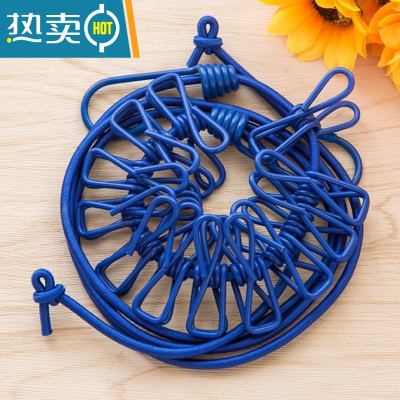 敬平旅行晾衣绳晒衣绳多功能松紧挂绳便携户外野营防风晒衣夹子晾衣挂 蓝色款(送收纳袋) 1个