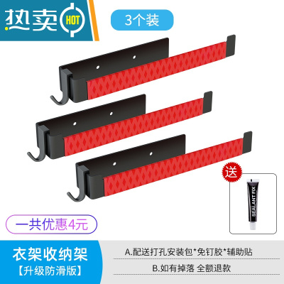 敬平衣架收纳器壁挂免打孔家用阳台挂钩衣夹子衣架整理架衣架收纳架 衣架收纳架A款-黑色升级防滑版-3个 1个