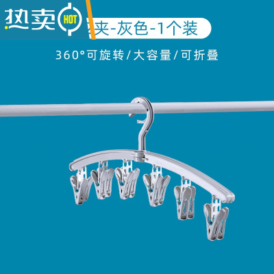 敬平多功能晾衣架多夹子旋转12夹袜子夹内衣架衣撑家用折叠晾晒裤架 灰色1个装衣夹