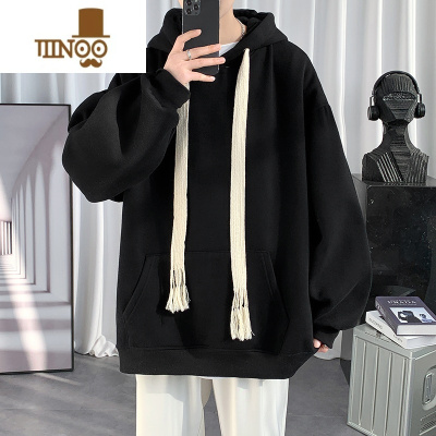 YANXU织带抽绳卫衣男士连帽宽松港风潮牌纯色潮流加厚休闲外套男