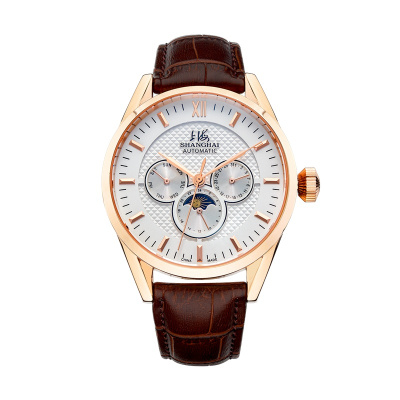 上海(SHANGHAI)手表男士多功能系列全自动机械表X713男表多功能真皮革皮表带潮流时尚休闲腕表男表