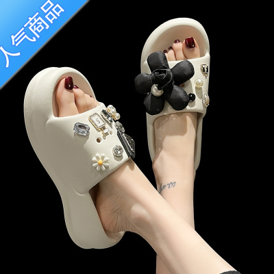 SUNTEK可爱珍珠花朵一字拖女夏季ins潮时尚外穿厚底高跟沙滩防滑凉拖鞋