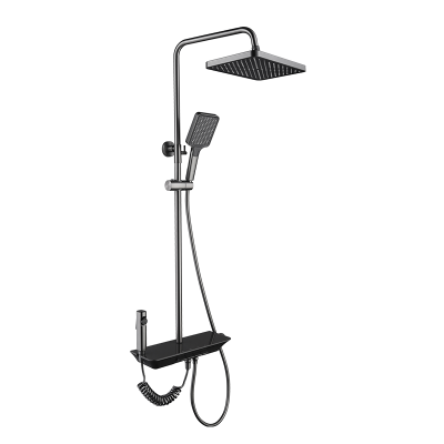 金牌卫浴GOLD 枪灰色大置物平台 四挡淋浴花洒套装KA05805(含安装)