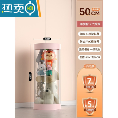 敬平毛绒娃娃收纳箱儿童玩偶玩具圆柱收纳桶筐公仔塑料透明收纳筒器