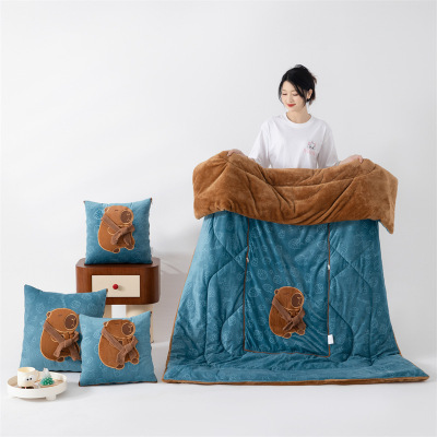 新款牛奶绒多功能抱枕被围巾豚系列 长毛绒 加厚毛绒玩偶