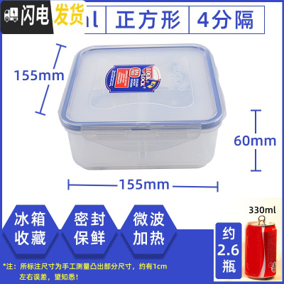 三维工匠保鲜盒分格便当带饭盒分隔微波炉冰箱塑料儿童水果盒便携 方870(4分隔)