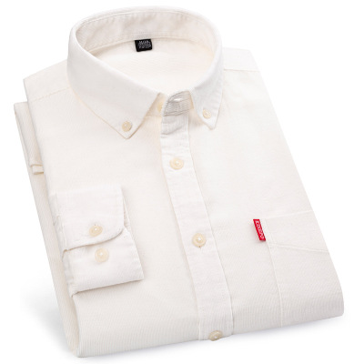 春秋新款全棉灯心绒长袖衬衫男修身工装衬衣男士条纹潮流商务寸衫