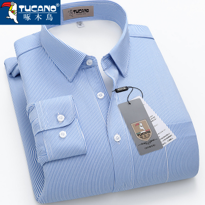 啄木鸟冬季男士保暖衬衫男免烫商务正装加绒加厚保暖衬衣男条纹