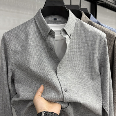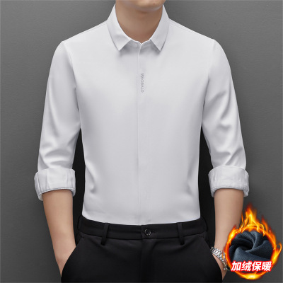 冬季新款衬衫男纯色加绒男士商务翻领衬衣加绒衬衣男