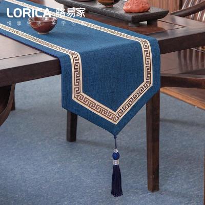 美式桌旗新中式禅意茶旗布现代简约茶几餐桌北欧电视柜布 福延年-蓝色(平角款) 33*240cm(适用桌长1.9米-2米)
