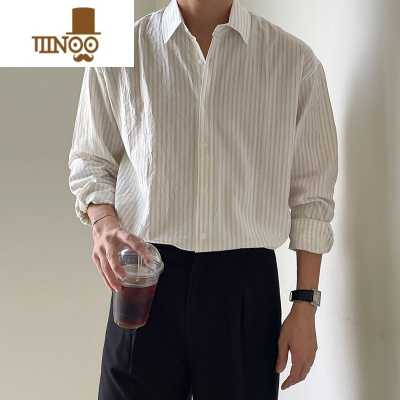 YANXU条纹衬衫男秋季新款日系复古百搭长袖衬衣感简约宽松休闲外套
