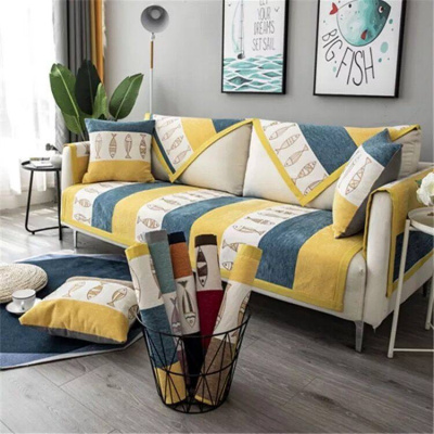 家柏饰(CORATED)沙发垫 四季通用防滑沙发巾盖布北欧简约加厚 沙发套全包套罩 雪尼尔黄蓝鱼 70*180cm