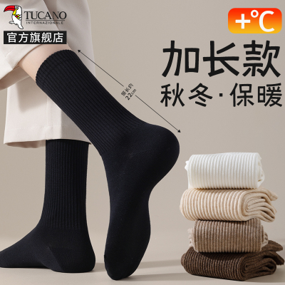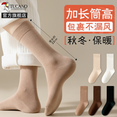 啄木鸟厚袜子女中筒袜加绒加厚保暖毛巾月子袜2024新款长筒袜秋冬季