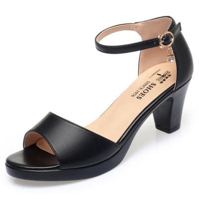 夏季新款女鞋百搭鱼嘴鞋中跟高跟防水台职业细跟粗跟凉鞋小码