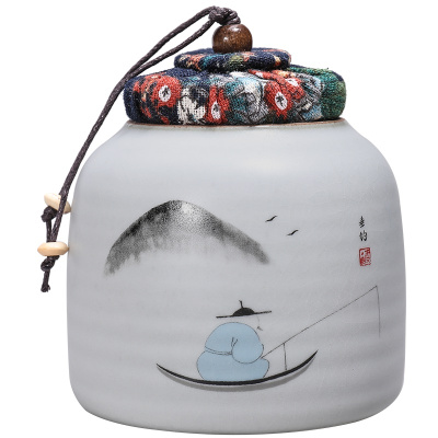 博为 茶叶罐大号小号密封罐普洱醒茶罐存储罐家用陶瓷茶罐 独钓寒江(约可装茶叶80g)