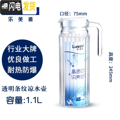 三维工匠家用耐热玻璃鸭嘴壶果汁饮料壶可高温凉水瓶冷大容量 透明条纹1.1+杯刷凉水壶