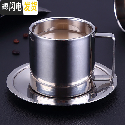 三维工匠304不锈钢咖啡杯办公室马克杯情侣水杯下午茶杯子饮料杯1 大号杯+盘+勺咖啡器具
