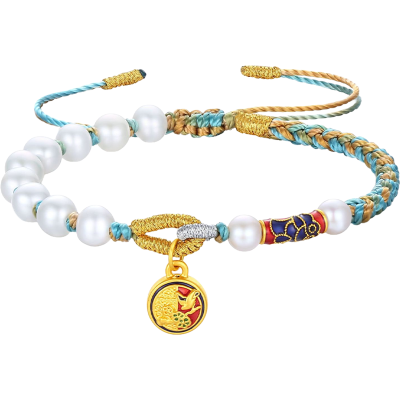 Alice爱丽丝珠宝 足金999国潮珐琅福袋珍珠手链 H0400072
