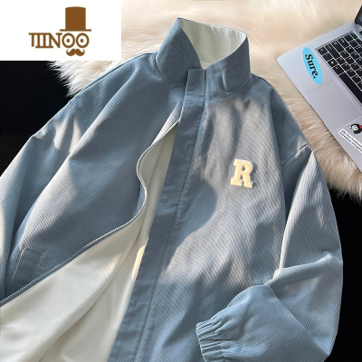 春秋季新款双面穿夹克外套男立领长袖休闲百搭情侣字母男装棒球服