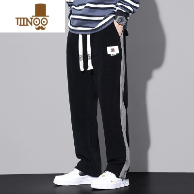 YANXU灯芯绒格子裤男韩版潮流阔腿长裤潮牌百搭直筒宽松休闲运动裤