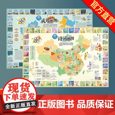 []共2张诗词地图和成语地图折叠版约86x60cm小学生常用诗词成语少年儿童地理文化国学启蒙地图 正版保证