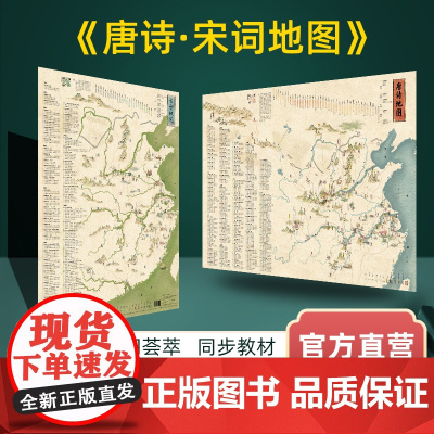 [正版]地图 唐诗宋词地图共168首诗词全2张2023年新版 儿童古诗词挂图学生版 中国地理历史知识国学启蒙地图墙贴大