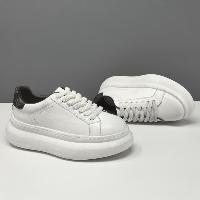 男生头层牛皮白色板鞋男款潮鞋真皮百搭复古擦色脏脏鞋厚底小白鞋