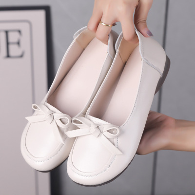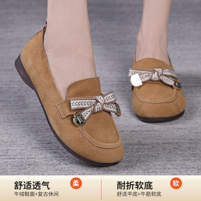 复古勃肯鞋女新款真皮蝴蝶结软底乐福鞋豆豆鞋四季平底孕妇鞋