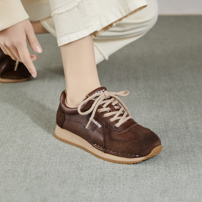 真皮德训鞋女2026春季新款平底复古运动休闲女鞋子百搭阿甘鞋