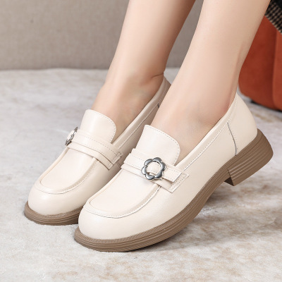真皮乐福鞋女秋季新款女英伦风小皮鞋一脚蹬女鞋复古四季单鞋