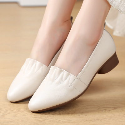 25秋季妈妈鞋真皮舒适中跟软底中年单鞋方头小皮鞋工作鞋女四季鞋