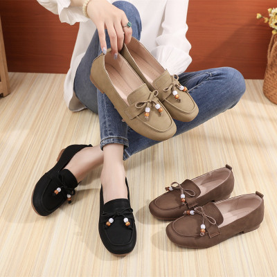 春秋新款复古鞋流苏款韩版女懒人百搭休闲鞋真皮四季单鞋女鞋