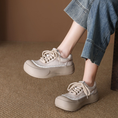 头层牛皮复古厚底松糕鞋女2026春季新款百搭休闲大头鞋真皮单鞋