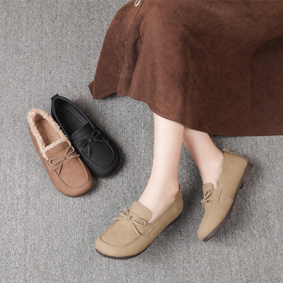 妈妈鞋25秋冬新款棉鞋中老年软底女舒适平底真皮保暖复古毛毛单鞋