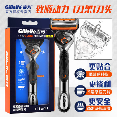 吉列锋隐致顺动力剃须刀 锋速5电动刮胡刀致顺动力1刀架1刀头
